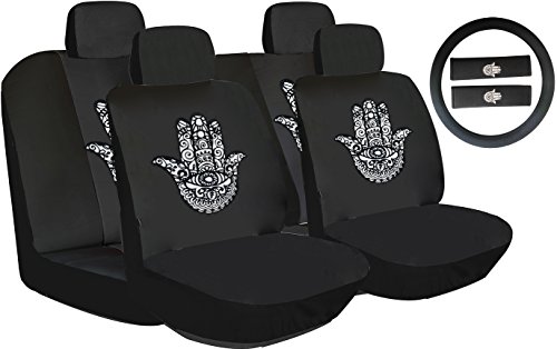 Premium 13 Piece Luxury Black Poly Cloth The Hamsa Hand of Fatima Stitching Art Yoga Religous Meditation Universal Car Seat Cover Set w/ Steering Wheel & Seat Belt Pads - Thank you for visiting this site. This review will we made about "Premium 13 Piece Luxury Black Poly Cloth The Hamsa Hand of Fatima Stitching Art Yoga Religous Meditation Universal Car Seat Cover Set w/ Steering Wheel & Seat Belt Pads", if you are currently looking for the article on it, it means you need to read this review now.